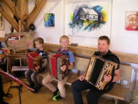 Am 14. und 15. Oktober waren wieder die Tage des offenen Ateliers. Die Veranstaltung fand nun schon zum 15. Male statt und wurde in ganz Niederösterreich angeboten. Auch ich habe mich mit meinem Atlier daran beteiligt. Am 14. Oktober gab es einen Kindermalworkshop und am Sonntag hatten Harmonikaschüler der Musikschule Groß Gerungs und der Regionalmusikschule Waldviertel Mitte die Gelegenheit, ihr Können unter Beweis zu stellen.